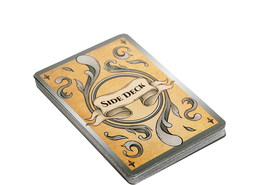 The side deck contains all of the specialty cards that are only brought into play through other cards and abilities. You’ll never have to draw from the side deck, so you don’t have to worry about shuffling it.