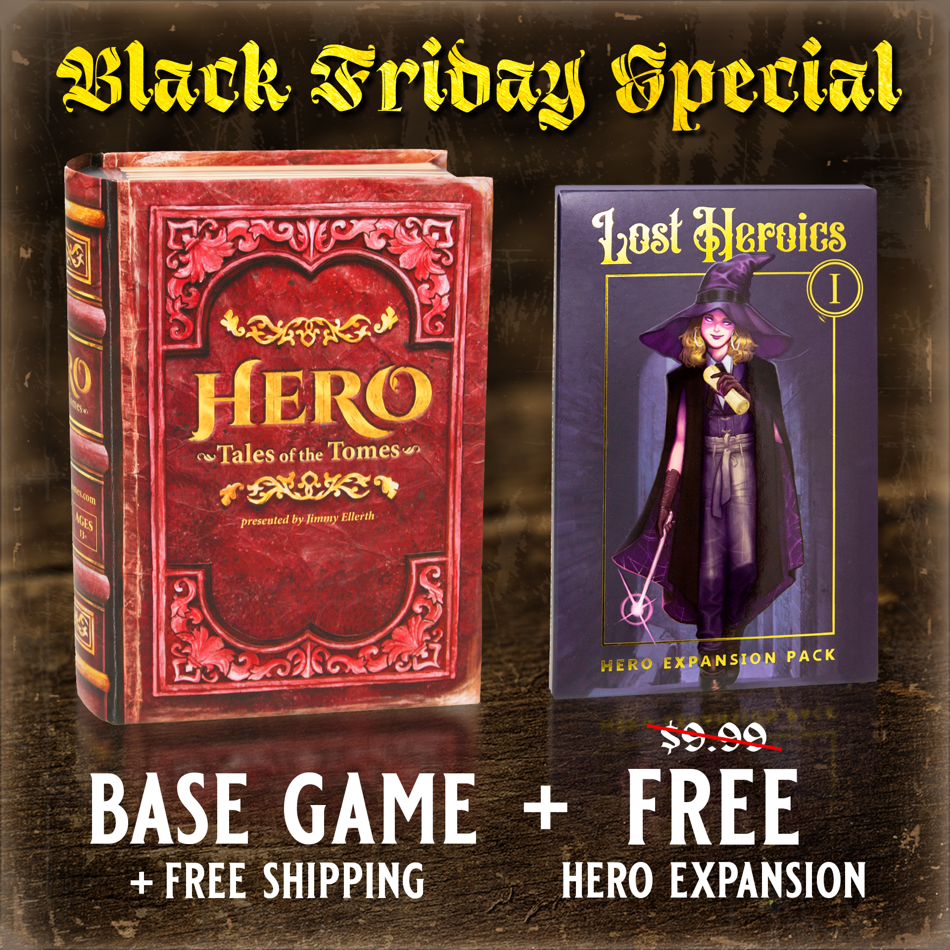 This starter kit includes the 1st edition of Hero: Tales of the Tomes plus the Lost Heroics 1 expansion pack.